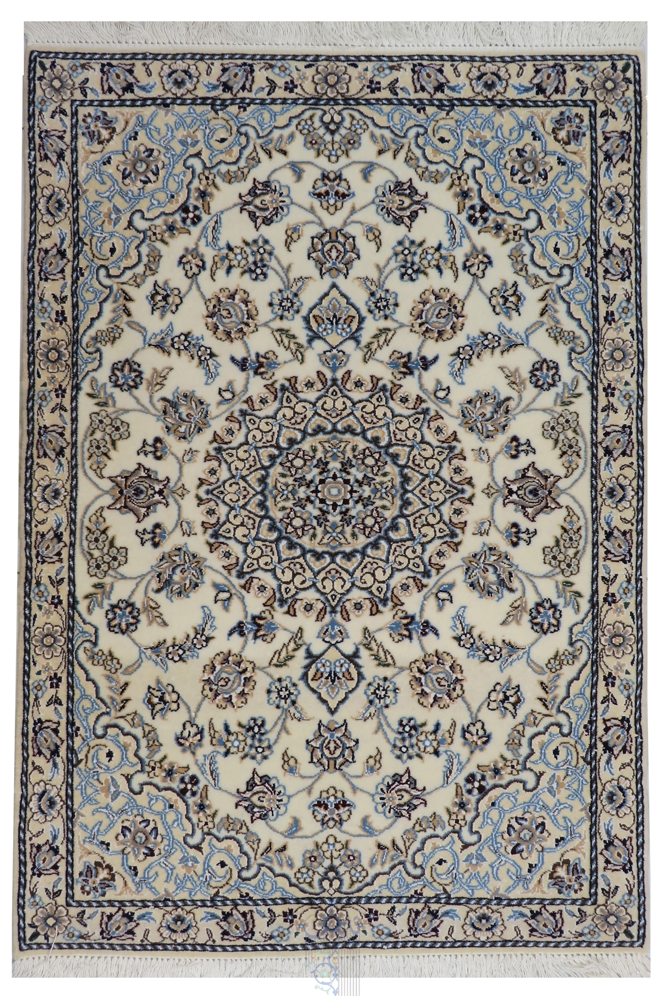تصویر فرش دستباف نایین ذرع چارک ۹لا پشم و ابریشم طرح لچک ترنج کرم