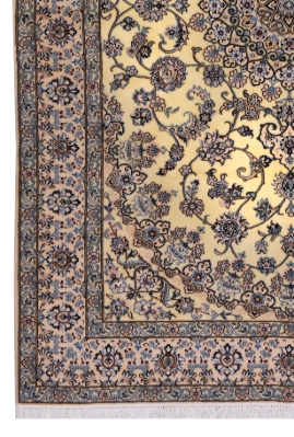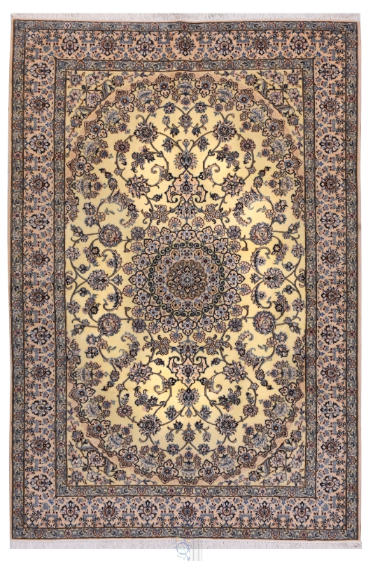 فرش دستباف نایین پرده ای ۶لا نقشه لچک و ترنج کرم