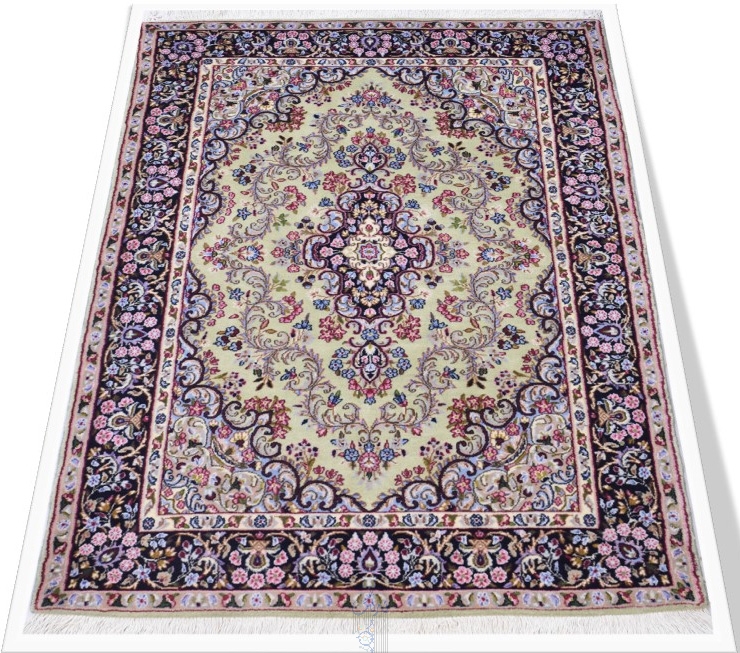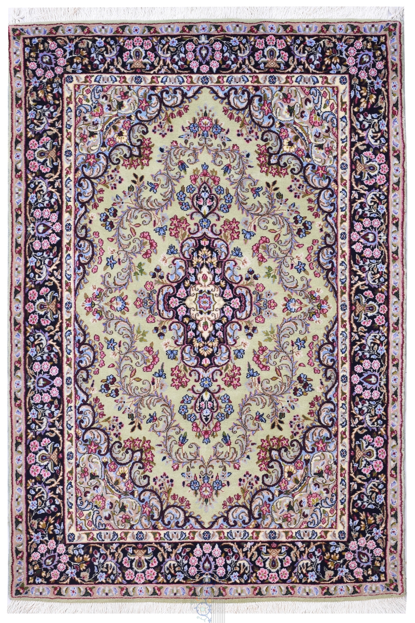 1/5meter Handwoven Kerman rug, wool, 100 pairs of lemon-colored Saram design