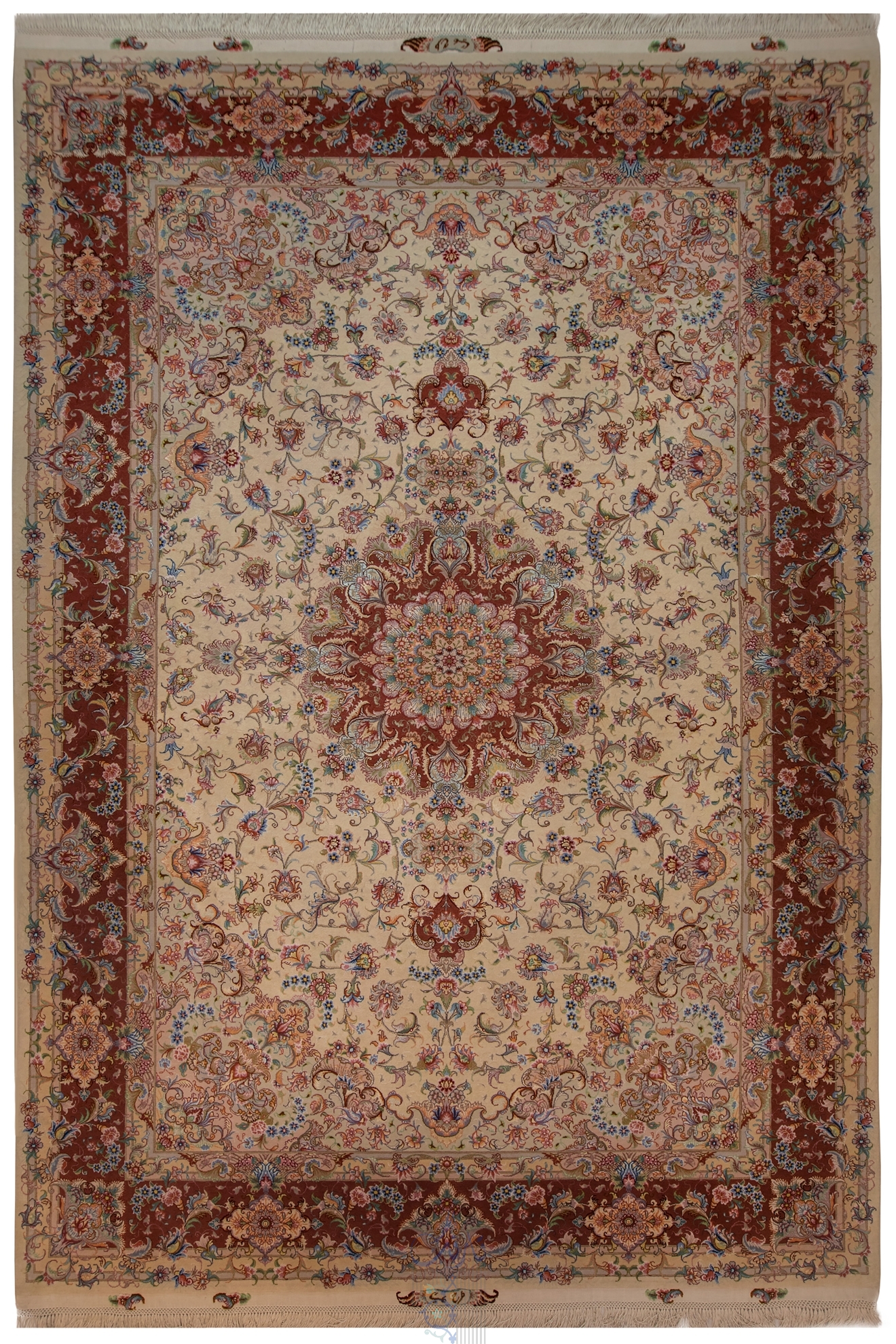 طراحی این فرش با جزئیات دقیق و نقوش گل ابریشم به نام 'علیا تبریز'، زیبایی و شکوه هنر دستبافت را به اوج میرساند. ابعاد 200*300 سانتیمتر و وزن تقریبی 18 کیلوگرم این فرش را به یک قطعه منحصر به فرد و لوکس در دنیای هنر تبدیل کرده است.